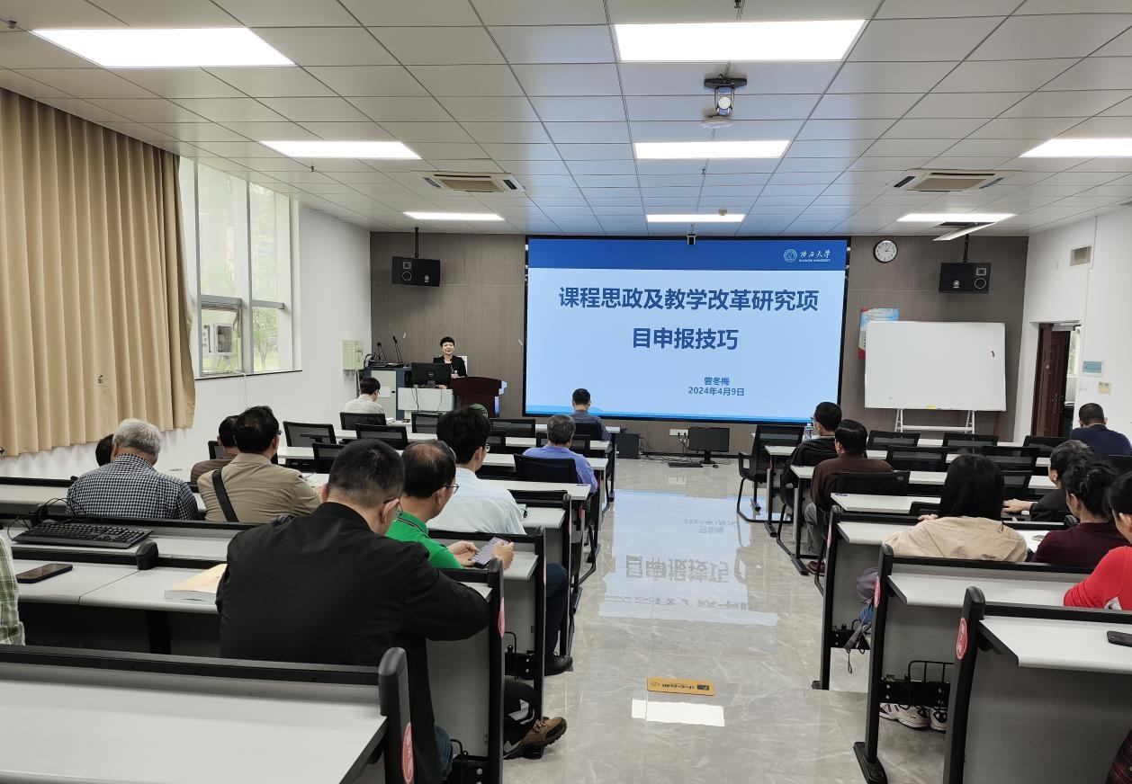 曾教授从课程思政的内涵、发掘课程思政元素的六个策略以及专业课程融入课程思政的三个视角展开课程思政培训。接着,从教育教学研究项目的分类开始,培训如何申报教学改革项目,同时结合当前全国本科教学改革重点给出了申报建议,并以实例说明项目选题和申请书写作的具体技巧。