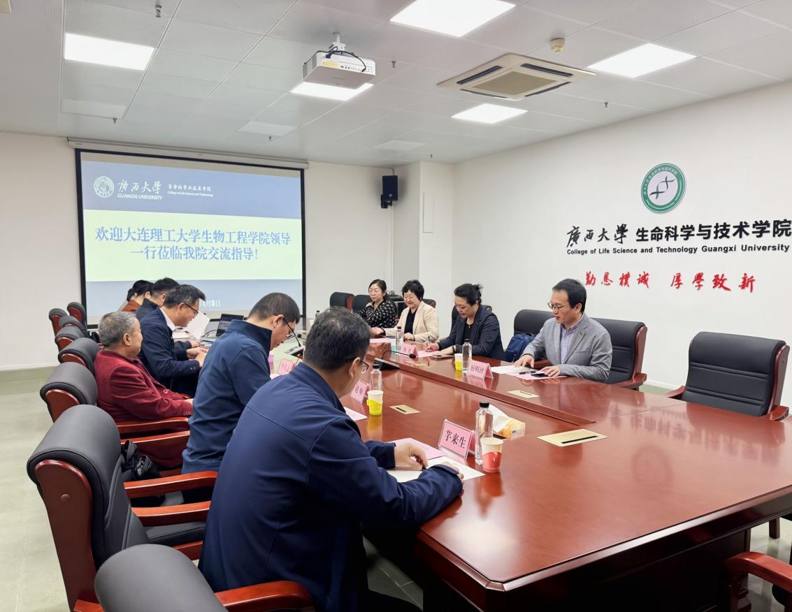 1月5日上午,大连理工大学生物工程学院院长贾凌云,党委书记杨君,党委副书记、副院长赵婷婷,院长助理屈明博一行4人到太阳集团tyc138交流座谈。太阳集团tyc138党委书记刘培军,党委副书记、副院长李伟辉,党委副书记、纪委书记覃文月,副院长赵帅,副院长卢洁,副院长芋来生以及李有志教授参加了座谈会。座谈会由太阳集团tyc138党委书记刘培军主持。