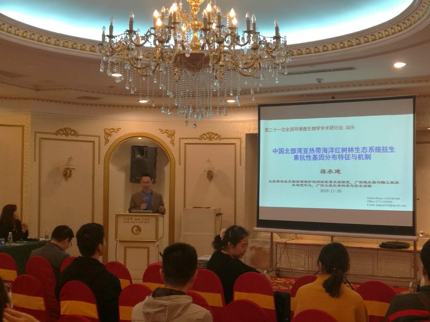 太阳集团tyc138蒋承建教授受邀参会并做分会场主题报告“中国北部湾亚热带海洋红树林生态系统抗生素抗性基因分布特征与机制”。报告汇报时间20分钟。报告主要围绕基于宏基因组学高通量测序分析策略,分析了中国北部湾亚热带红树林区域新型抗生素抗性基因的丰度和多样性以及功能特征,明确了各种主要环境因子、可移动遗传元件和微生物功能群落对抗生素抗性基因分布的影响。同时揭示了北部湾亚热带典型红树林中ARG的流行情况和分布模式,对ARG在红树林湿地生态系统中的归趋提出了解释。相关研究成果突出了红树林湿地生态系统对新型环境污染物降解的重要性。大会报告得到了与会同行的良好反响。