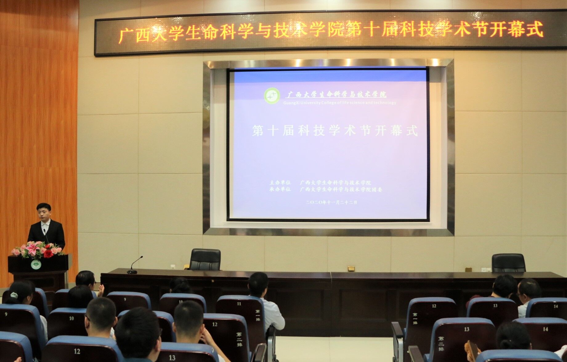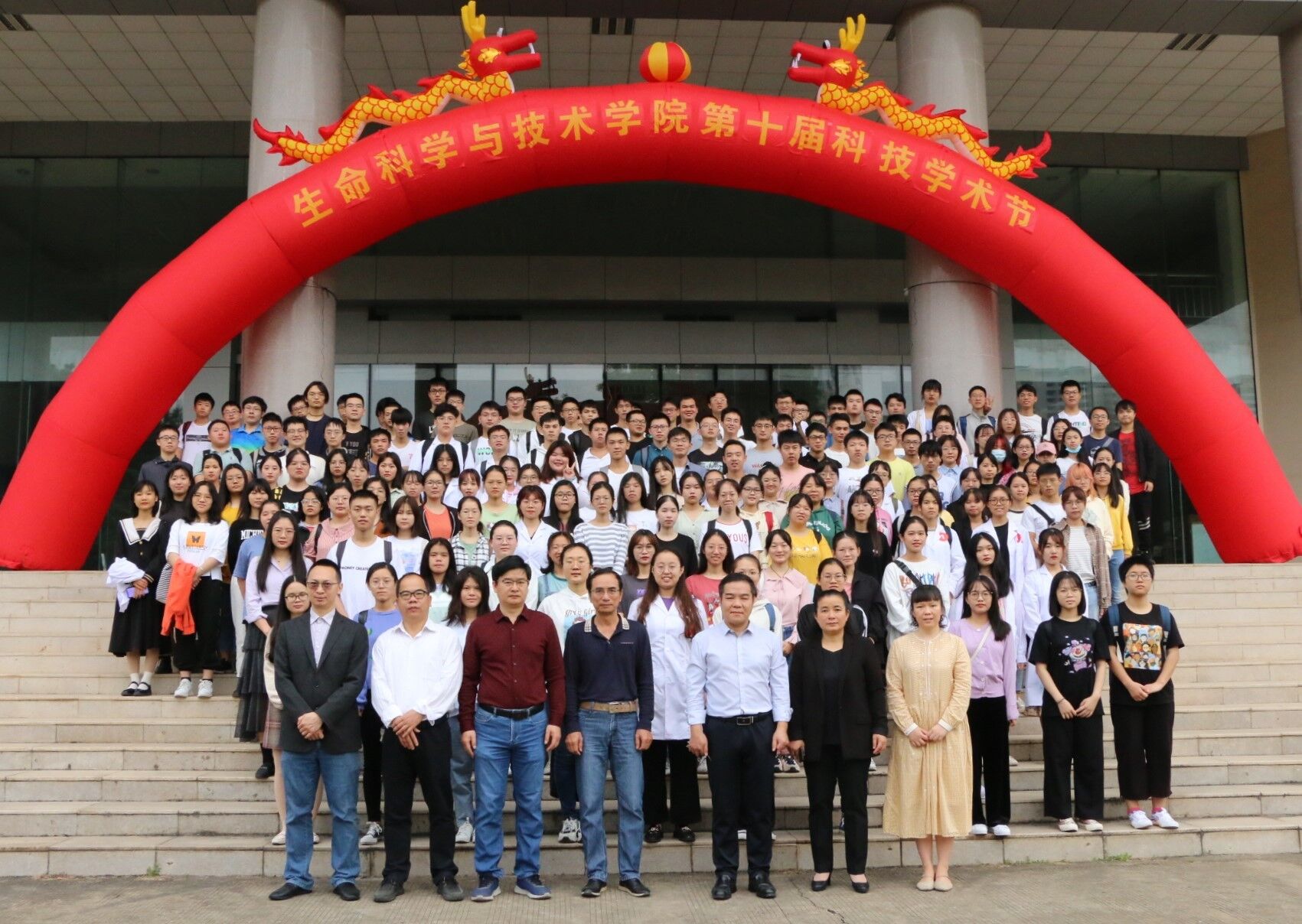 莅临本次开幕式的学院领导嘉宾有:学院党委书记莫柏林老师,学院党委副书记、副院长覃健强老师,学院党委副书记曾海艳老师,学院副院长申佩弘老师,学院院长助理、教学实验中心主任姜伟老师,学院生物科学系系主任李楠老师,学院生物技术系系主任蒋承建老师,学院团委书记周嫱老师。学院领导、教师代表和学生代表共300多人出席了此次会议。