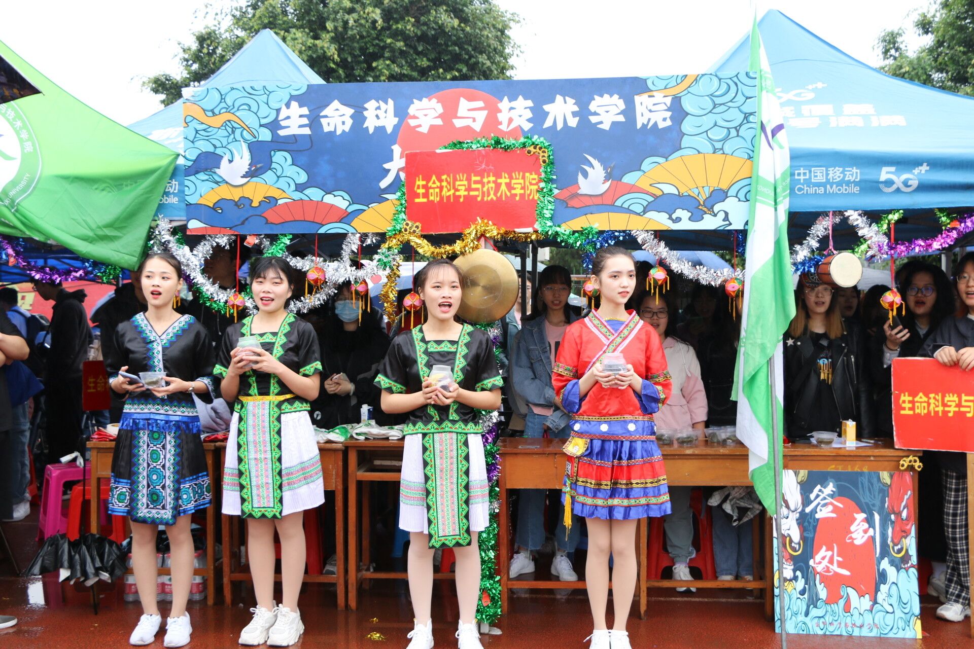 活动当天各学院学子身穿少数民族服饰,在学院大本营前展示少数民族物品和美食,用嘹亮的歌声和饱满的热情表达各学院对于少数民族运动和少数民族文化的热爱和支持,也表达西大学子对党的领导下所取得的伟大成就的歌颂,即使当天下着小雨也浇不灭西大学子的热情。