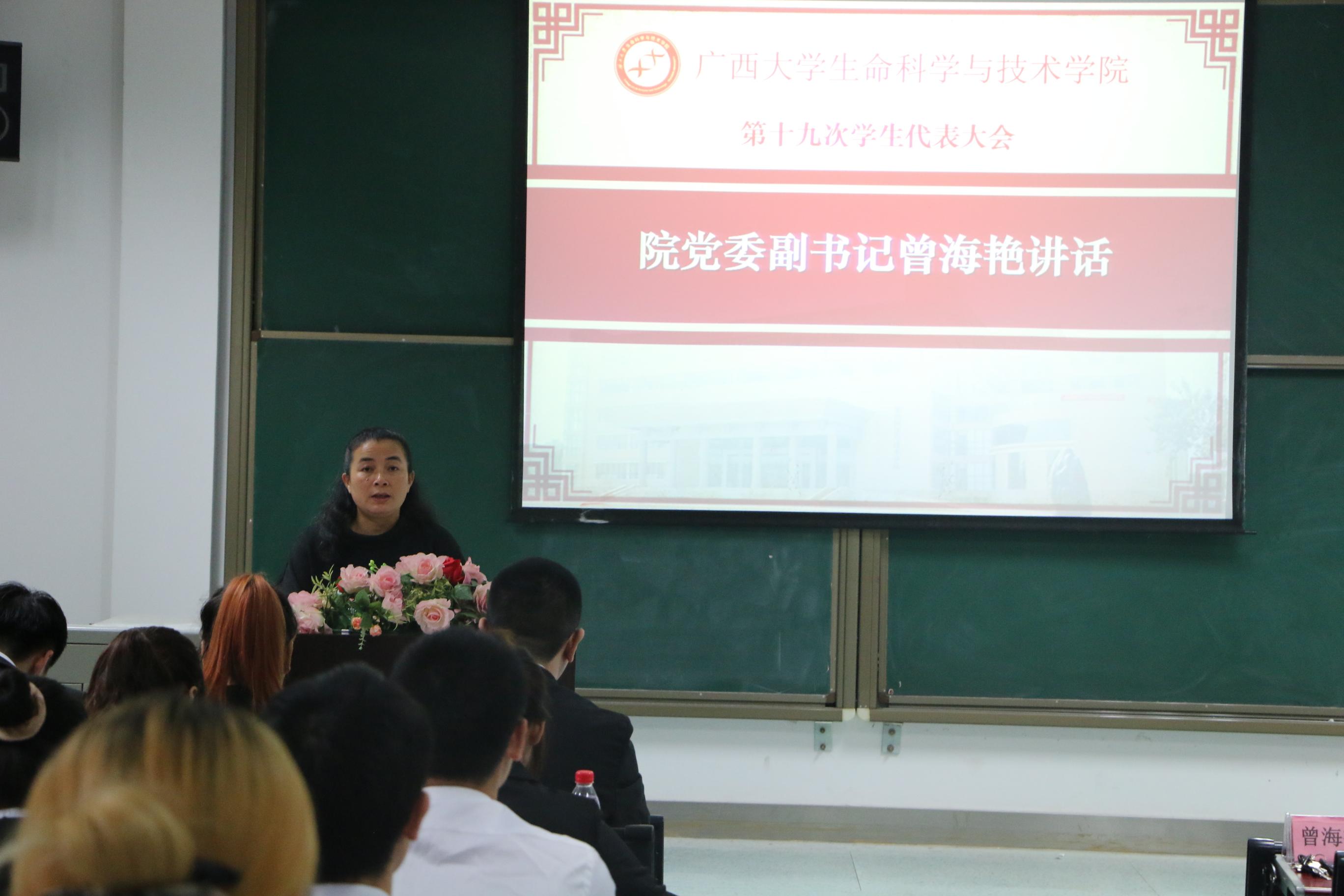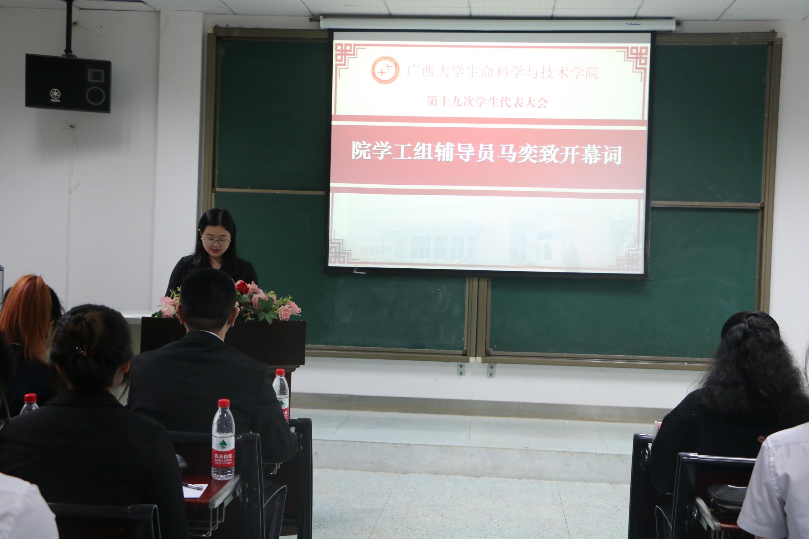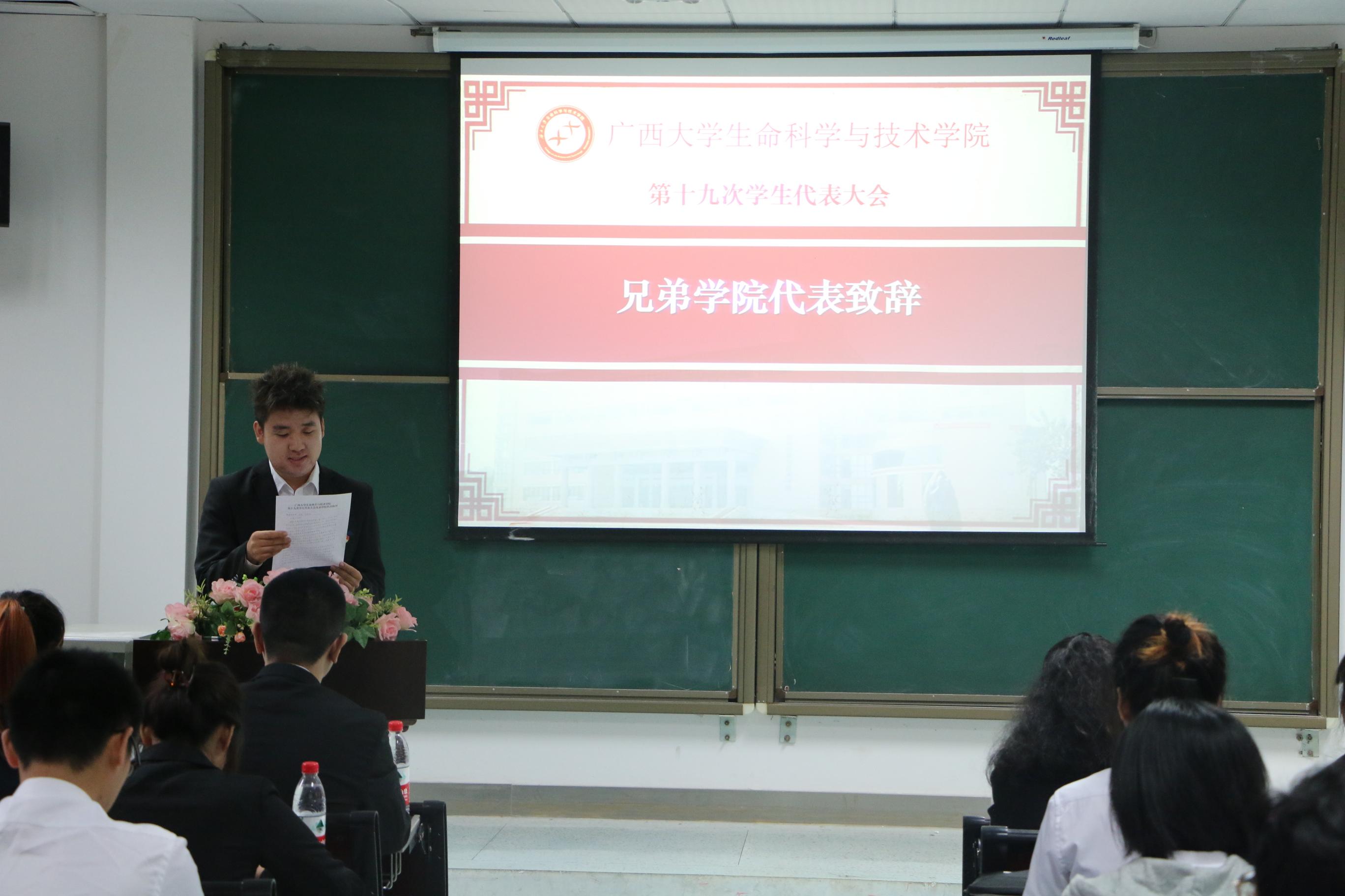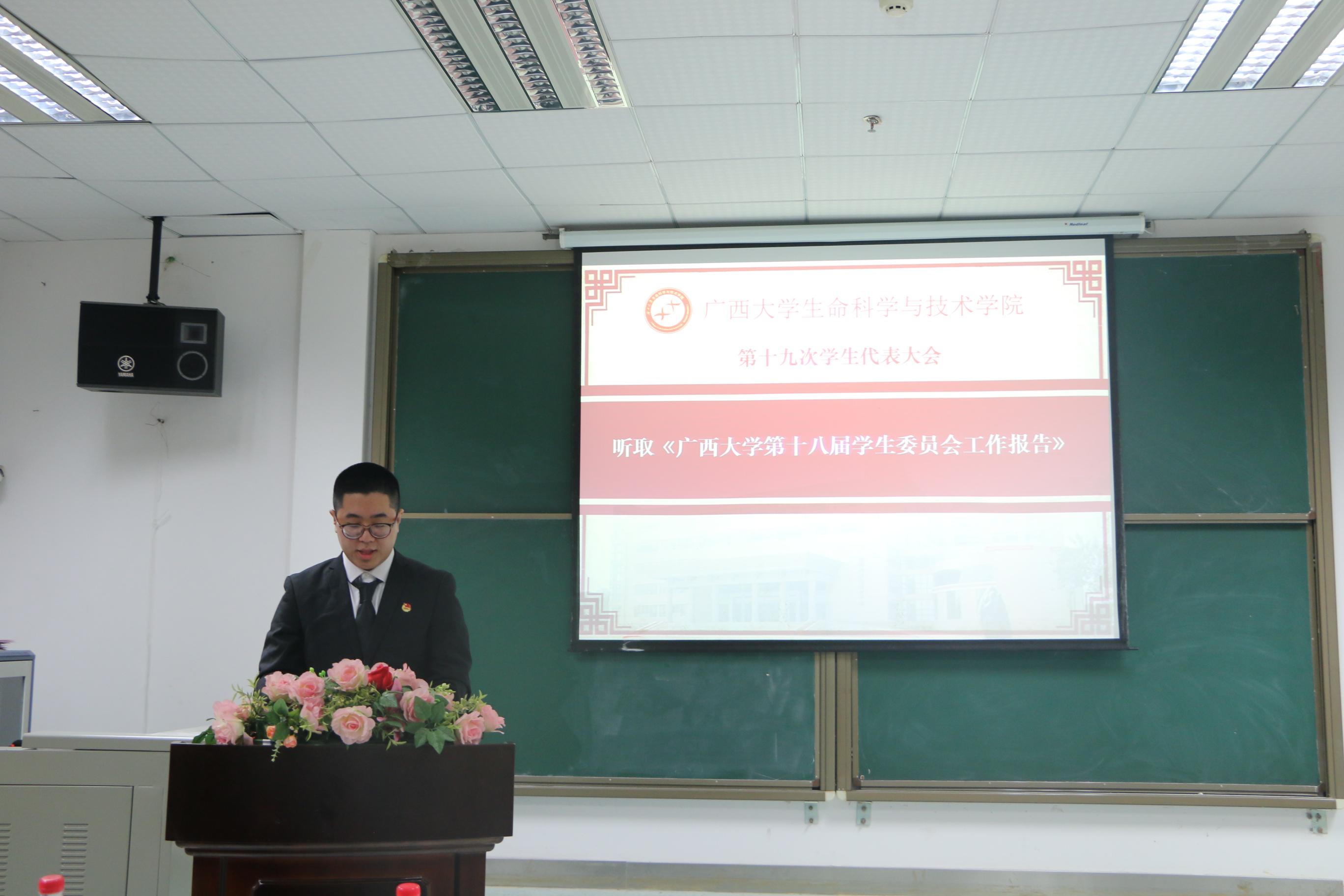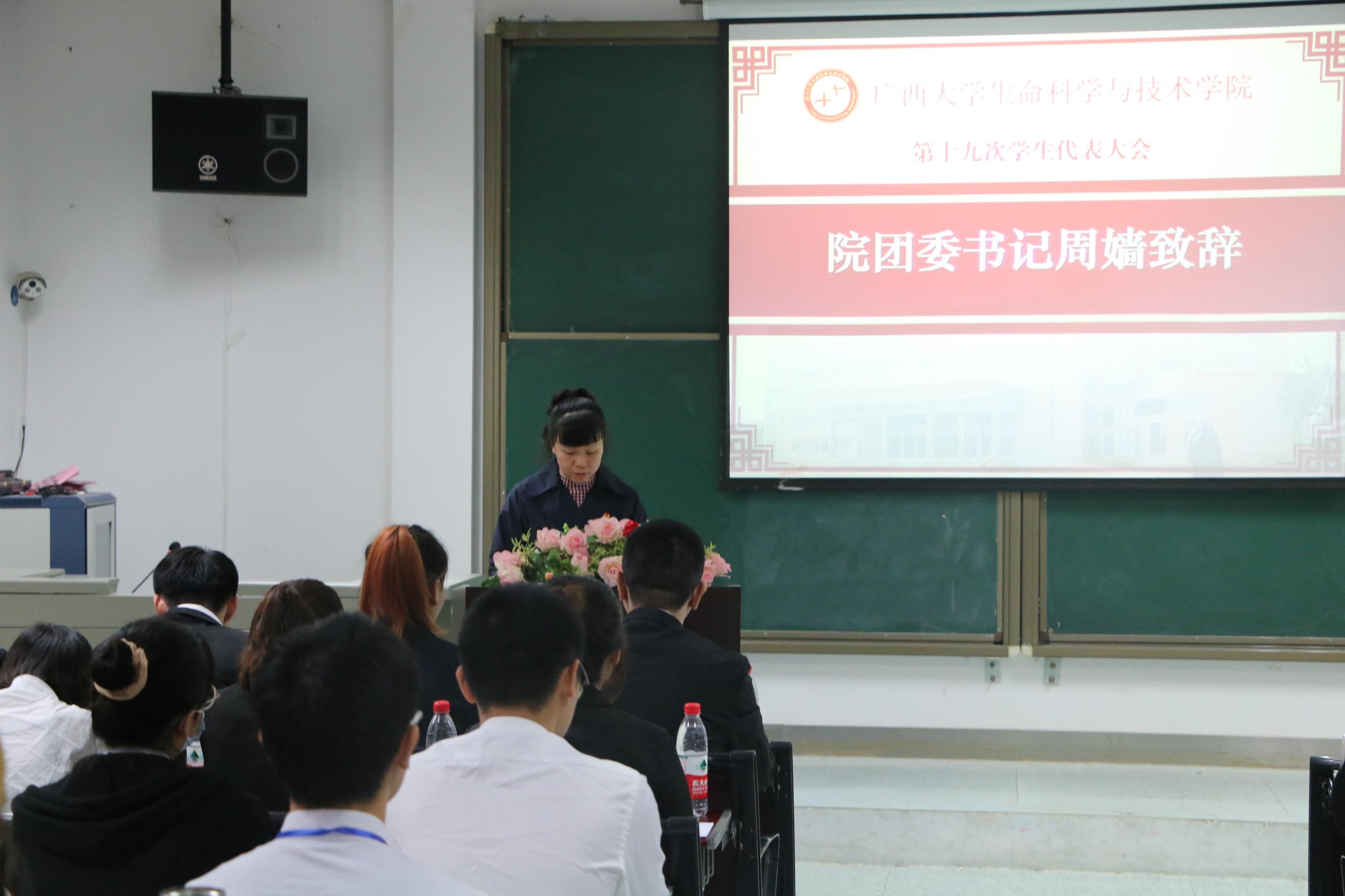 随后,院团委书记周嫱老师致辞,周老师对太阳集团tyc138第十八届学生会锐意进取、改革创新, 团结带领太阳集团tyc138学生为广西大学建成一流大学的各项工作做出肯定;并提出了本次大会的意义与宗旨,希望各位学生代表能切实履行自己的职责,正确行使自己的权利,希望新一届的主席团成员能够“承前启后,继往开来”,在接下来的工作中再创辉煌。