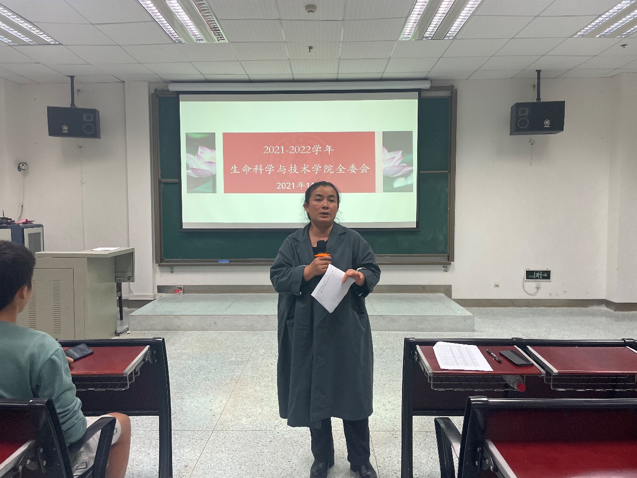 11月2日下午,太阳集团tyc1382021-2022学年学生全委会在学院106教室召开。学院党委副书记曾海艳老师、团委书记周嫱老师、学工组马奕老师、俸雪老师、团委学生会、研会代表及各班级主要班干出席本次会议,会议由学工组马奕老师主持。