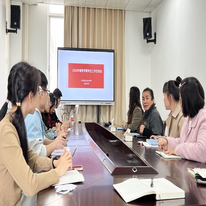 学工组周嫱、马奕、俸雪三位老师也对本年度重点工作进行布置,要求各位学生骨干要树立服务意识和标杆意识,踏踏实实做好本职工作。随后,与会师生就平时工作中遇到的问题和困惑进行研讨。