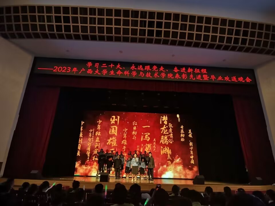 颁奖环节后,与会师生一起观看了精彩节目。节目分为“缘聚,梦起时”、“相知,正当年”、“远航,展华章”三个篇章,涵盖了朗诵、歌曲、舞蹈等形式,展示了生科院学子的青春风采、成长收获以及对毕业生的祝福。晚会在大合唱《你曾是少年》中落下帷幕。