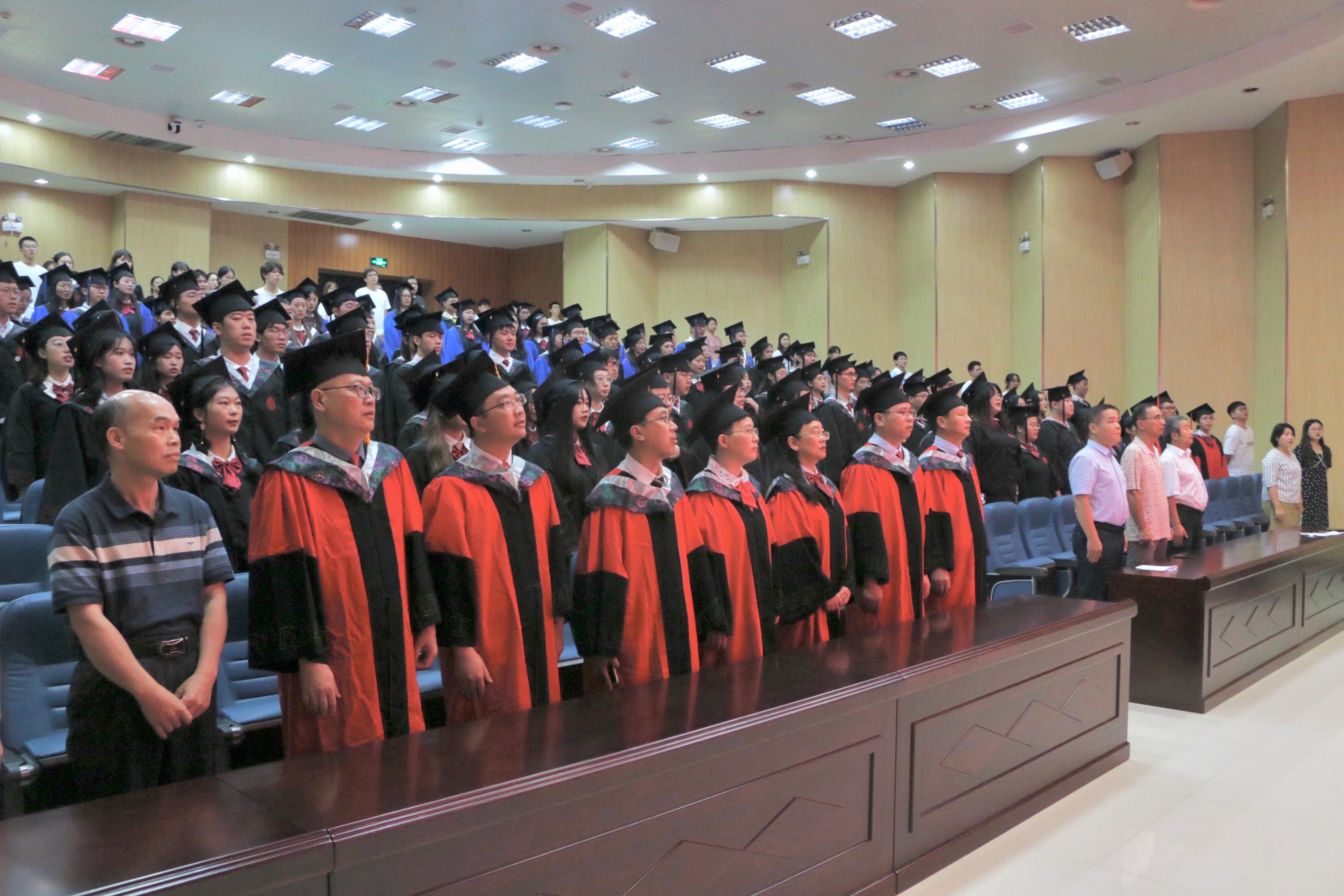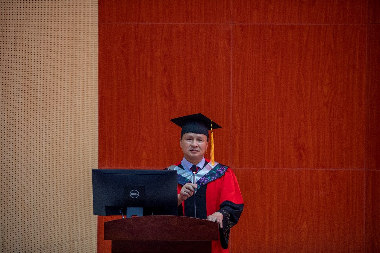 下午三时,典礼在庄严肃穆的国歌中拉开了帷幕。学院党委书记莫柏林向全体毕业生表达热烈祝贺,勉励继续深造的同学向世界科技前沿探索创新。同时,莫书记还叮嘱了毕业生关于证书保管和档案迁移等重要事项,关照毕业生们注重身心健康,还谈及了毕业生最关心的就业问题。