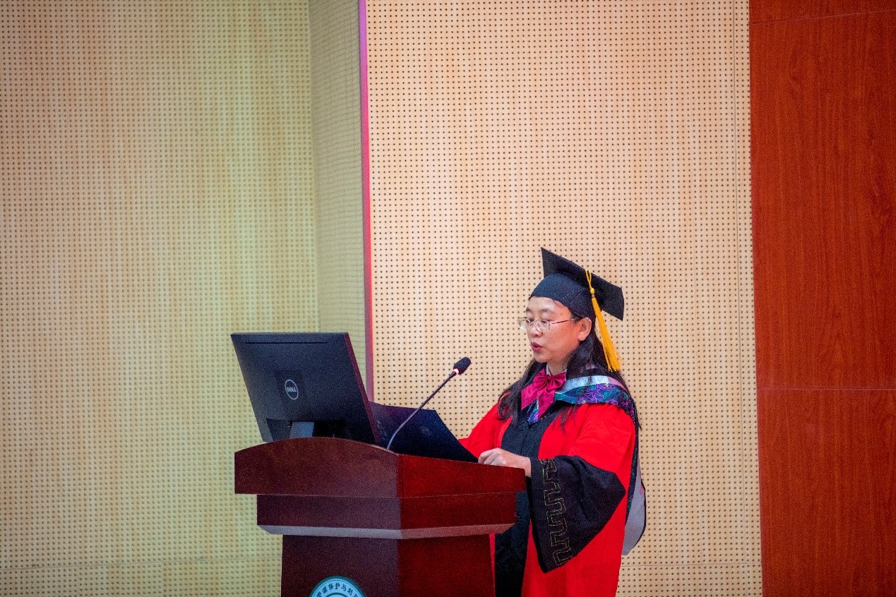 教师代表陈玲玲对毕业的同学致以热烈的祝贺和深情的祝福。陈教授指出这四年来,学校、时代和毕业生们在共同进步,希望毕业生们能利用自己的专业知识践行西大精神,在实现社会价值的同时实现个人理想。