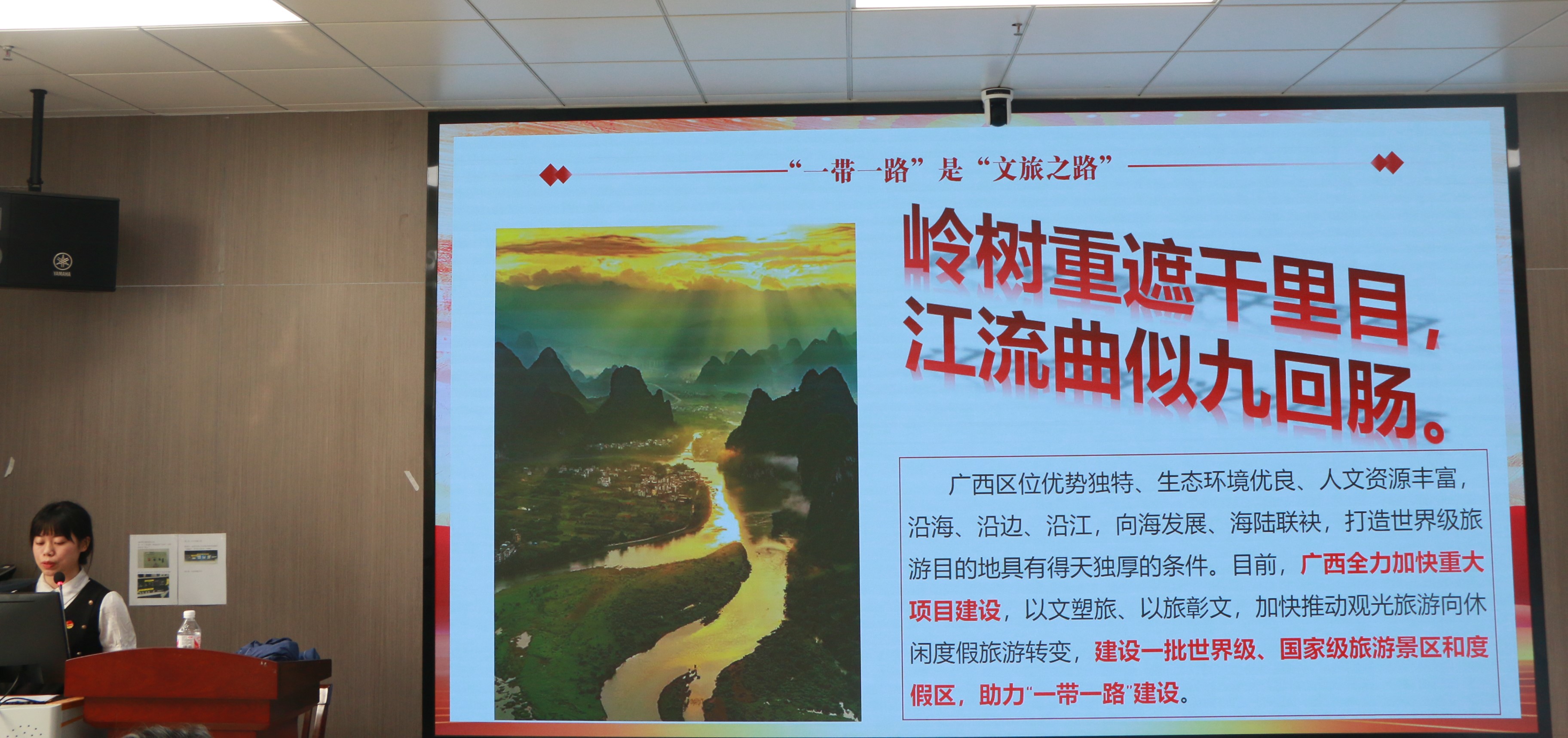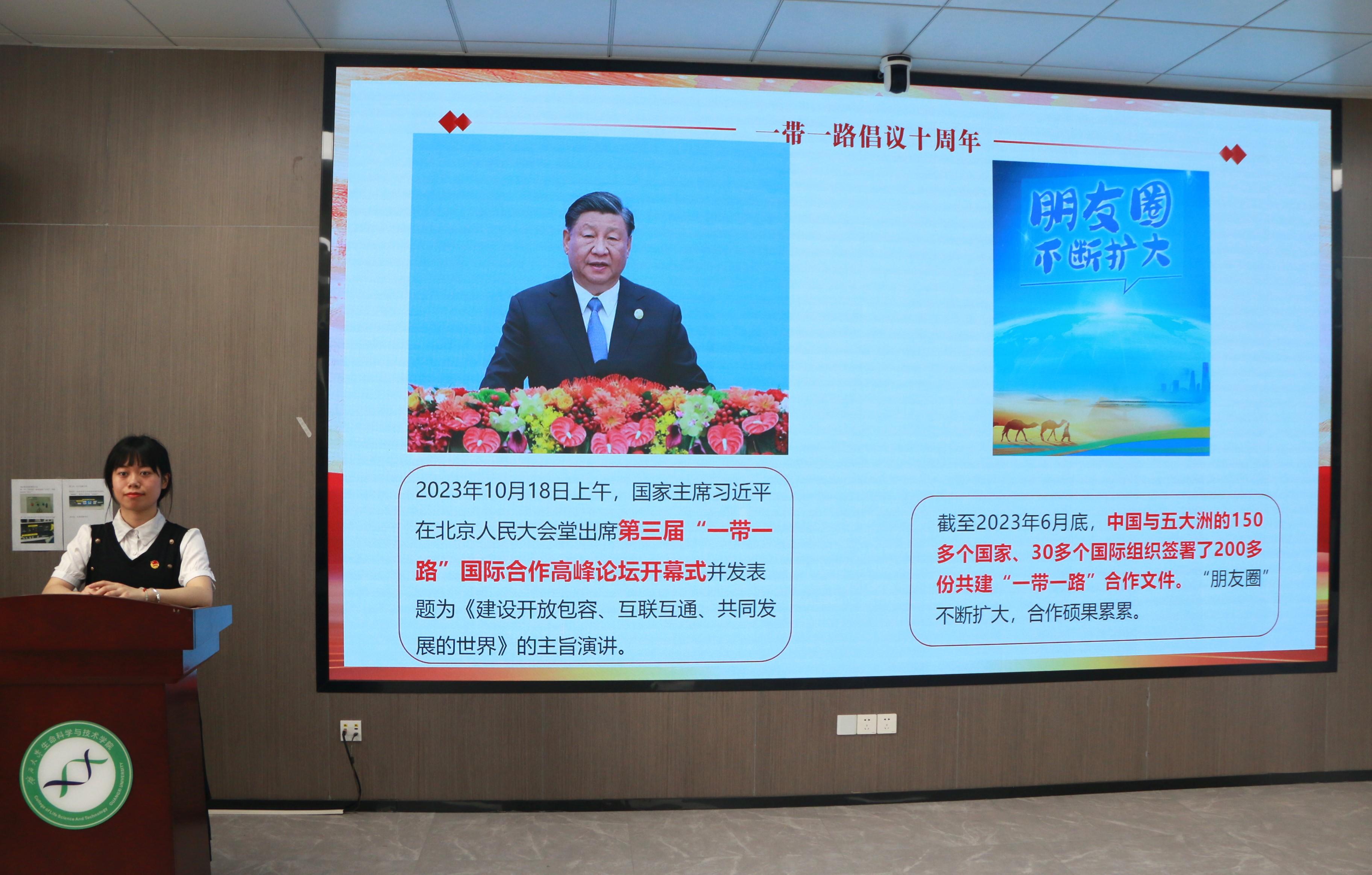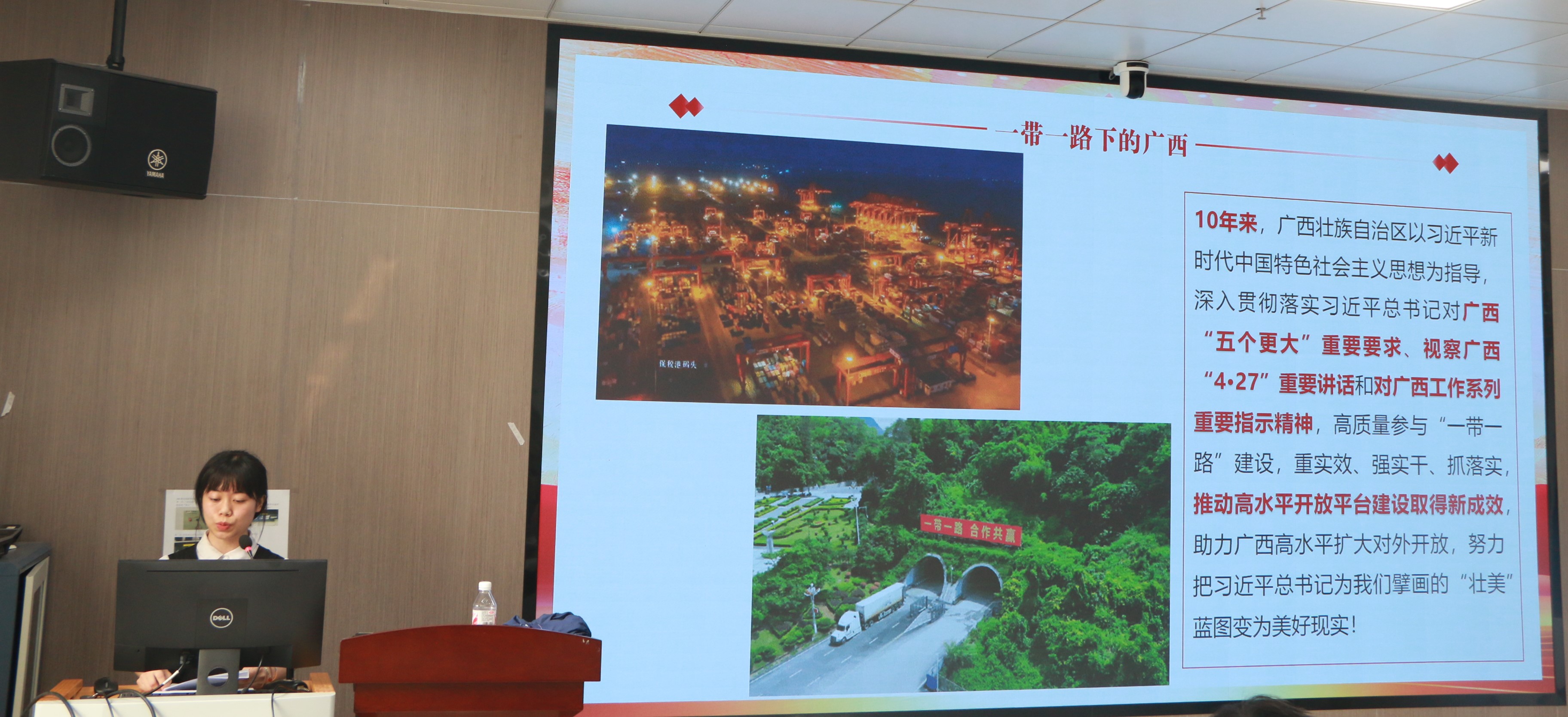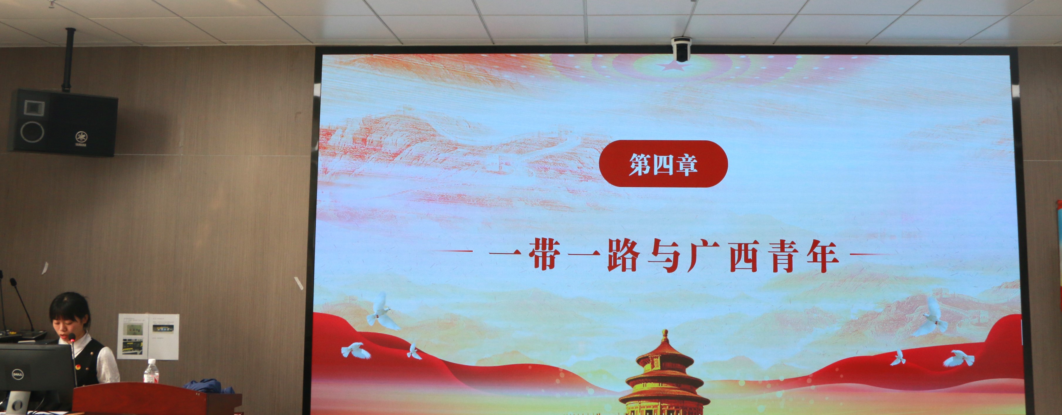 蓝渝泓给同学们阐释了“一带一路”倡议与广西青年的关系:“一带一路”倡议为广大青年提供了更多的发展机遇和交流平台,同时也促进了广西地区的经济发展和文化交流。习近平总书记曾勉励青年“为推动共建‘一带一路’、推动构建人类命运共同体而努力”。作为新时代大学生,应该向“一带一路”沿线青年建设者看齐,为“一带一路”注入青春活力。