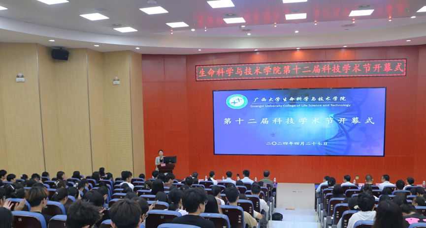 4月27日上午9时,太阳集团tyc138在圆形报告厅举行本届科技学术节开幕式。校学生工作部(处)部处长黄必春、校团委书记谢能重、学院领导班子、院各系(中心)主任、辅导员、兄弟学院学生代表及太阳集团tyc138300余名学生代表参加本次开幕式。学院党委副书记覃文月主持开幕式。