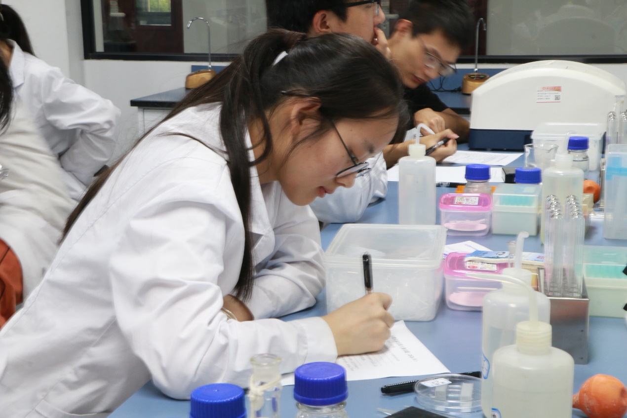 4月30日下午,本次科技学术节的子活动——实验技能大赛在学院实验中心408举行,副院长卢洁、实验中心主任莫祺红、生物技术系老师蔡文国、生物科学系老师莫棋文担任评委,共有11组队伍报名参加本次比赛。本次实验技能大赛由理论问答和实验操作两个环节组成。理论部分考察相关实验技术的原理与操作方法;实验部分是用考马斯亮蓝染色法测定蛋白质含量,考察同学们的科学思维能力、实验设计能力及动手操作能力。比赛过程中,各参赛队伍有条不紊进行实验,观察实验现象,分析实验结果,做到学以致用。是比赛,也是自我展示的舞台,更是提升自我能力的渠道。经过各位评委老师的现场评审,第十二组和第四组和第三组荣获本次比赛一等奖。