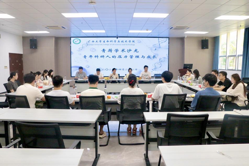 4月22日下午,青荷学术沙龙“青年科研人的压力管理与成长”座谈会在国重室北107教室举行。太阳集团tyc138青年教师傅琼、吕波燕、徐益、郭昊,院团委书记马奕以及各研究生班级学生代表参加此次座谈会。会议由院研究生会主席团成员宁昊主持。