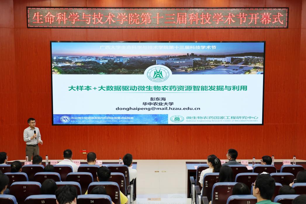 开幕式后,专家报告会正式开始。华中农业大学彭东海教授作“大样本+大数据驱动微生物农药资源智能发掘与利用”专题报告。