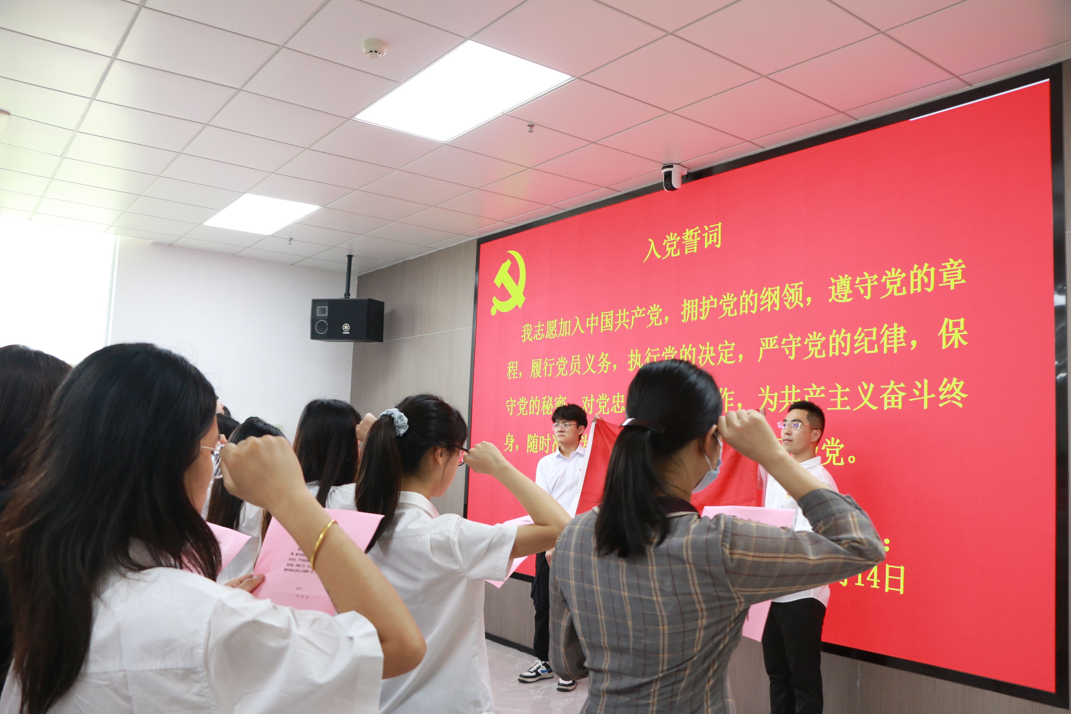 在入党宣誓仪式上,马奕宣读了参加宣誓的新党员名单。在覃文月副书记领誓下,全体新党员面向党旗庄严宣誓。
