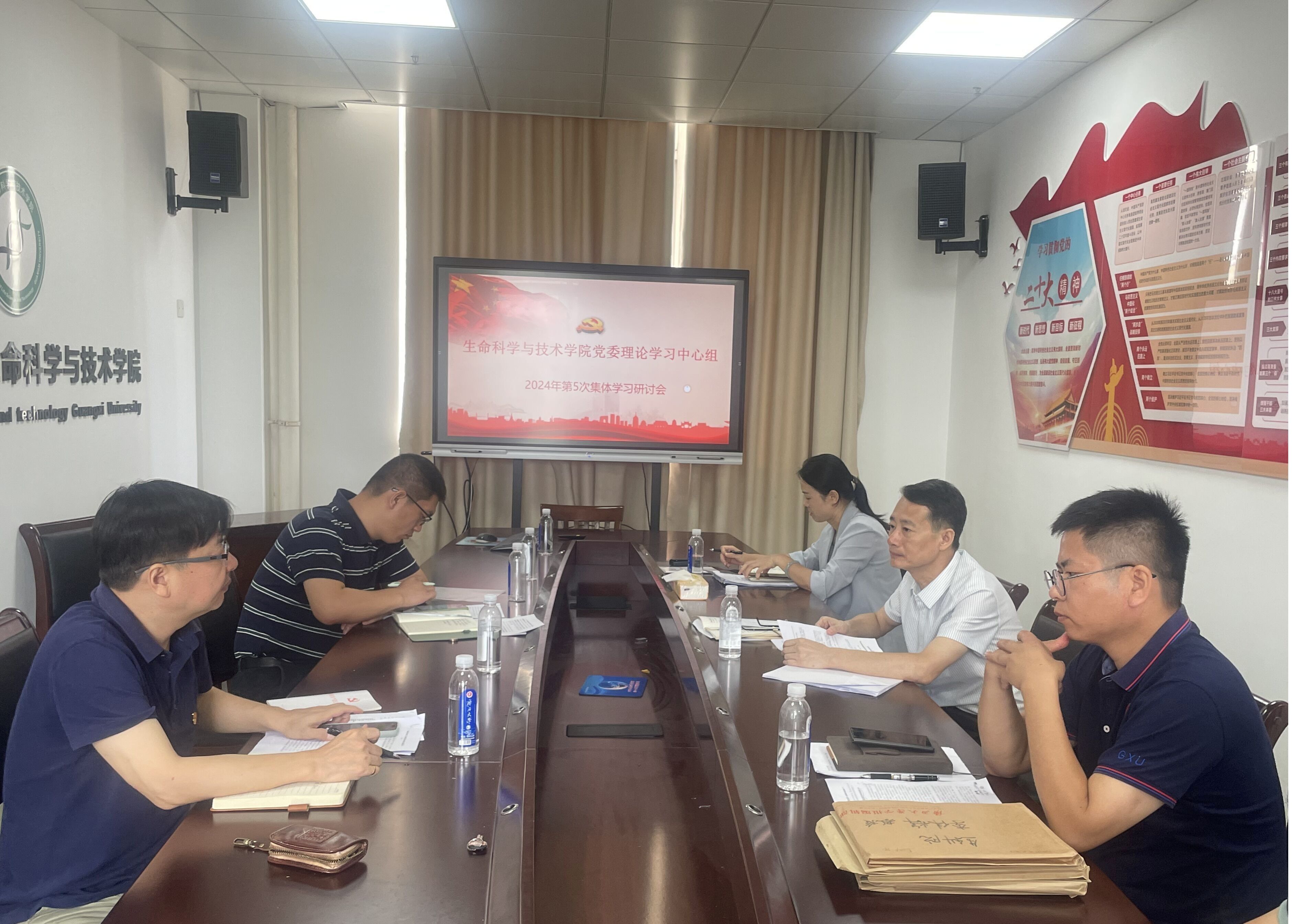 学习研讨会重点学习了《中共中央政治局会议决定今年7月召开二十届三中全会》《全面深化改革开放,为中国式现代化持续注入强劲动力》《习近平主持召开企业和专家座谈会》《习近平在山东考察》《习近平在中共中央政治局第十一次集体学习时的讲话》《习近平主持中共中央政治局第十二次集体学习》《习近平致信祝贺中国工程院建院30周年》《广西大学关于进一步压实学院师德师风建设直接责任的通知》《习近平主持中共中央政治局第十四次集体学习》《全国高校毕业生等青年就业创业工作视频会议在京召开》《关于开展2024届高校毕业生就业“百日冲刺”行动的通知》《关于开展2024届高校毕业生就业创业工作实地督查的通知 》《习近平总书记关于全面加强党的纪律建设的重要论述》《习近平对学校思政课建设作出重要指示》《广西贯彻落实〈普通高等学校教师党建和思想政治工作质量标准(试行)〉重点举措》《广西大学实验室安全专项整治2024年整改年工作方案》《关于做好2024年度实验室安全工作的通知》等文件资料;研究和部署学院学习贯彻习近平总书记重要讲话精神、全面从严治党、科研创新、师德师风、就业创业、实验室安全等工作。卢洁、赵帅、李伟辉、覃文月、马奕、芋来生等同志依次作了重点发言,其他参会同志围绕主题、联系实际进行了交流发言。