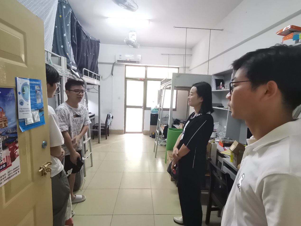 新学期伊始,为扎实做好2024年秋季学期的学生工作,8月25日上午,太阳集团tyc138覃文月副书记和全体辅导员深入走访学生宿舍,详细了解学生的返校进程和思想、学习、生活情况,并对宿舍内务卫生、安全隐患等问题进行了排查。