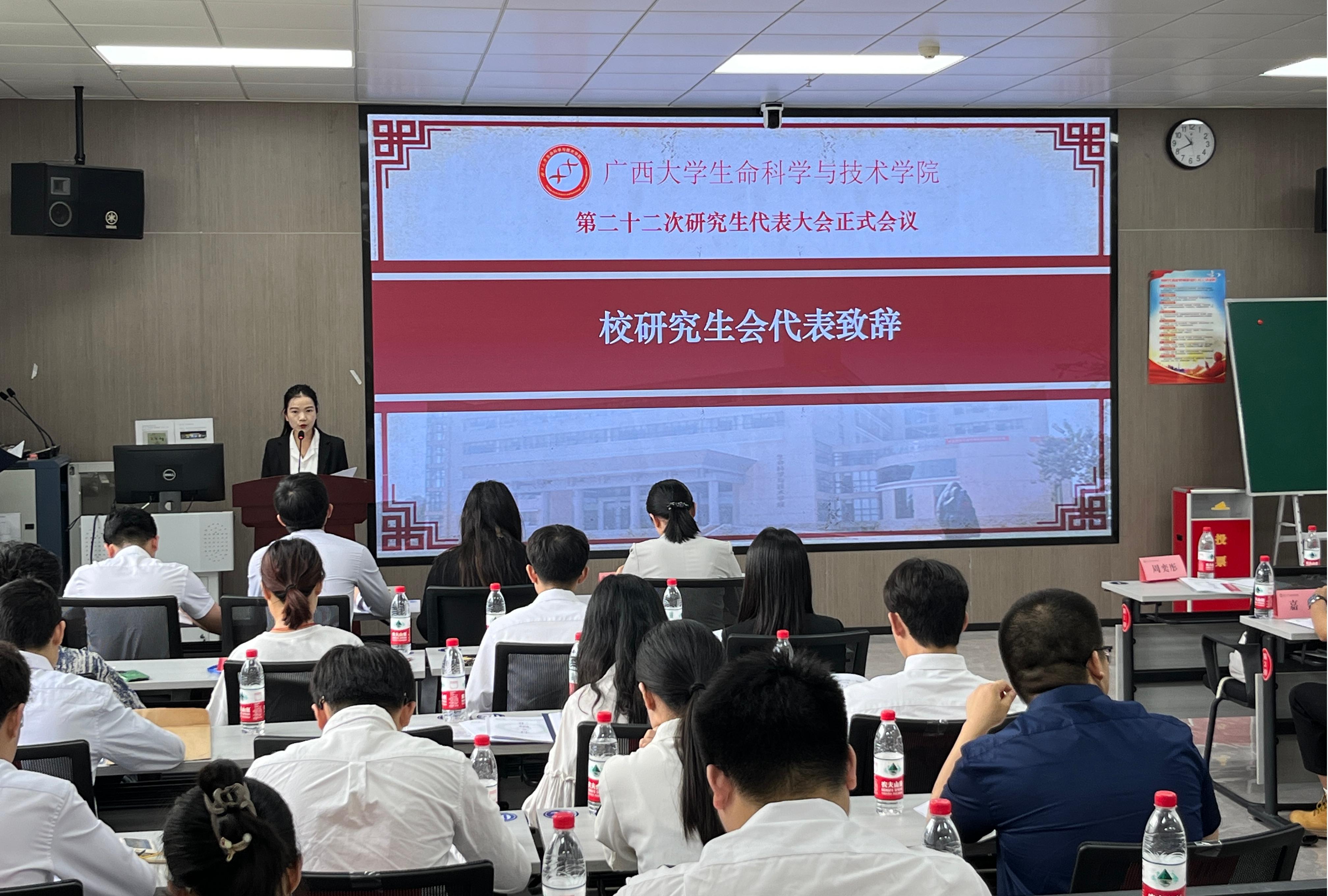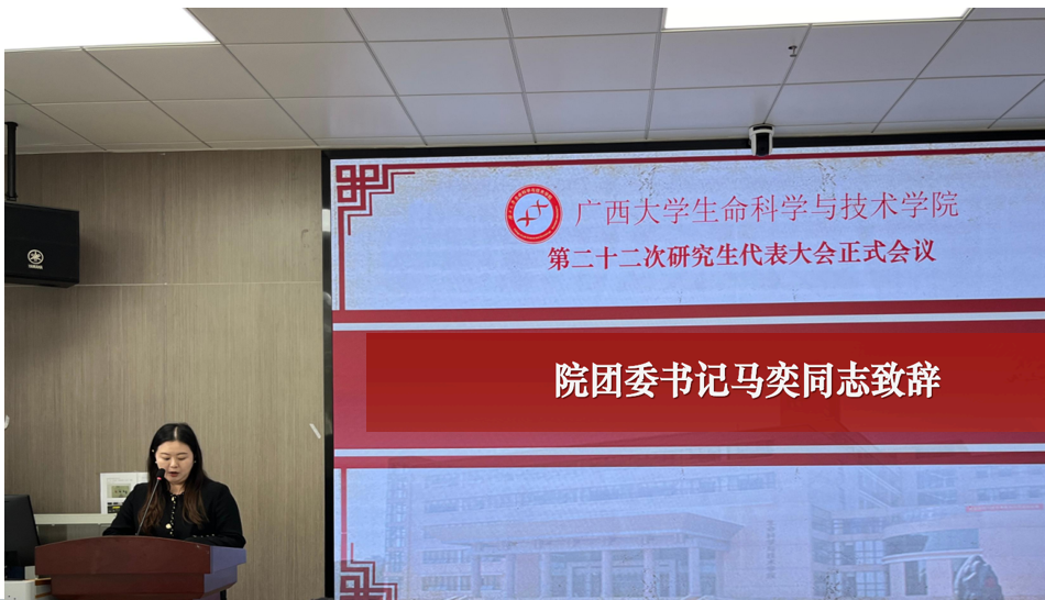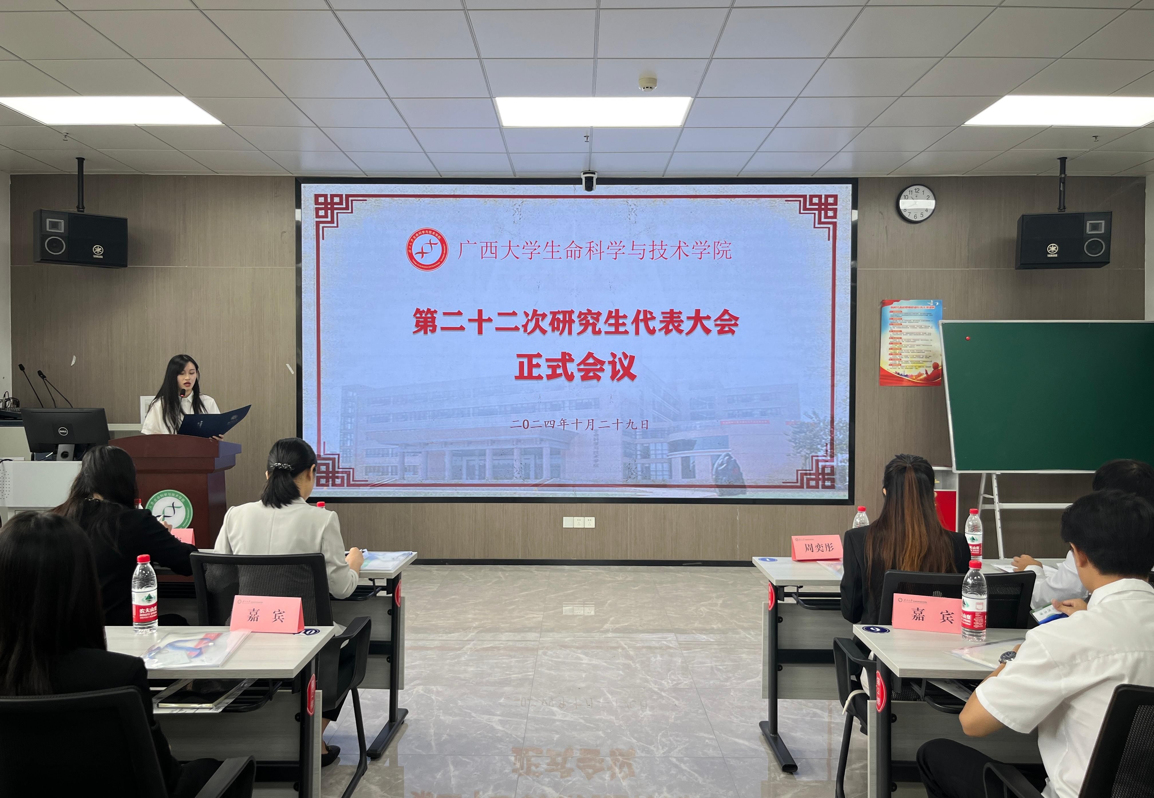 10月29日下午,太阳集团tyc138第二十二次研究生代表大会正式会议在学院106室顺利召开。学院党委副书记、纪委书记覃文月,团委书记马奕,学工组辅导员贺超、关家运,广西大学研究生会代表,兄弟学院研究生会代表以及太阳集团tyc138各班级代表出席本次大会。大会由学院第二十一届研究生会执行主席李晓玉主持。
