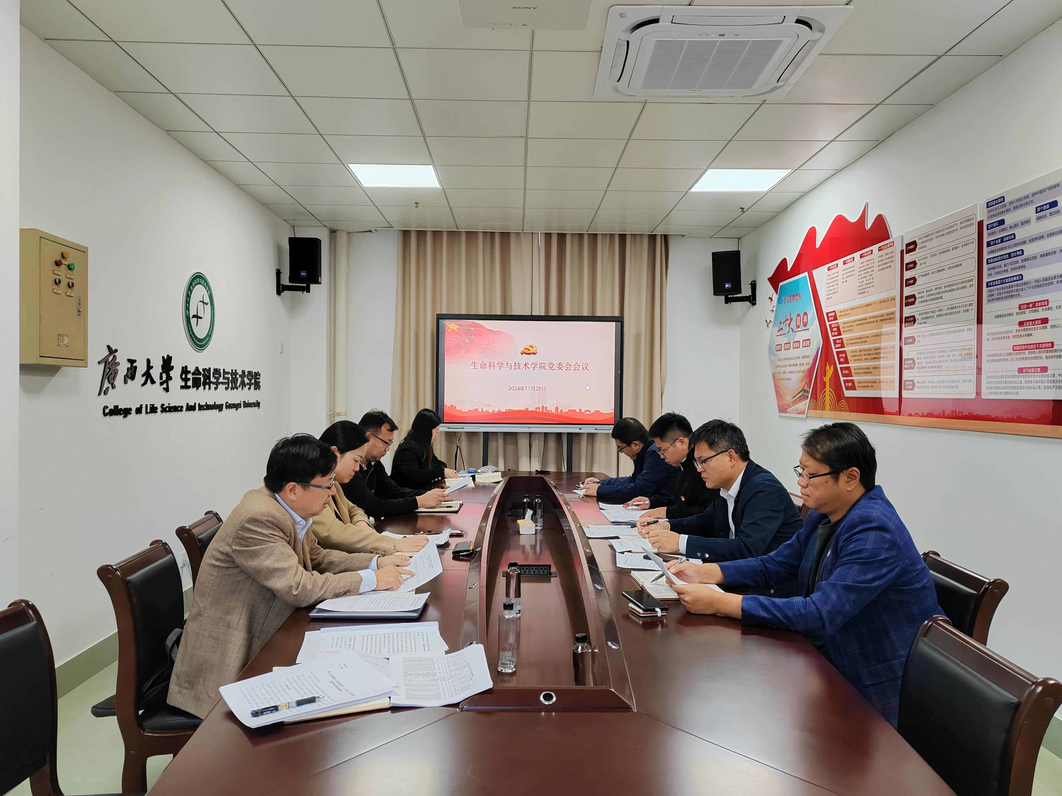 会议还具体研究和部署了两项重点工作:一是研究部署学院全面从严治党、意识形态、安全稳定等专题工作。传达学习了《自治区教育厅关于印发<全区教育系统防范电信网络诈骗宣传工作方案>的通知》《关于印发<广西大学开展依法治校学院治理专项整治工作方案>的通知》《关于印发<关于加强教师引进评审工作的若干措施>的通知》、《关于进一步加强和改进流动党员管理工作的意见》等重要文件。二是审议通过关于撤销生物技术专业本科生第一党支部、生物技术专业本科生第二党支部,成立生物技术本科生党支部的决定。