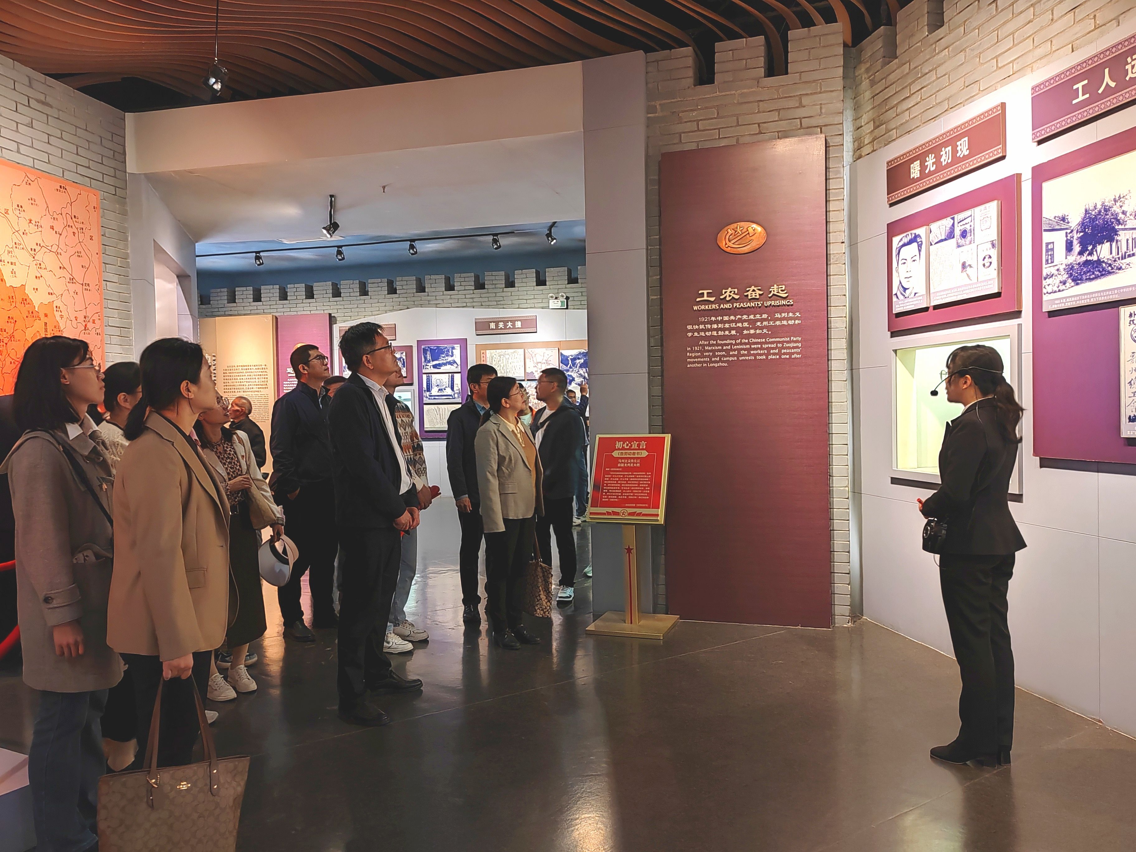 党员们参观了龙州起义纪念馆的《赤色龙州》主题展区、崇左市廉政教育展《左江魂》、红八军军部旧址等地,通过浏览陈列馆展出的革命文物、历史照片以及文字影像资料,深入了解了邓小平等老一辈无产阶级革命家组织领导龙州起义、创建中国红军第八军、建立左江革命根据地的波澜壮阔的革命奋斗历程;学习了红八军和左江各族人民在与法帝国主义和国民党反动势力顽强斗争中所展现的大无畏革命精神。