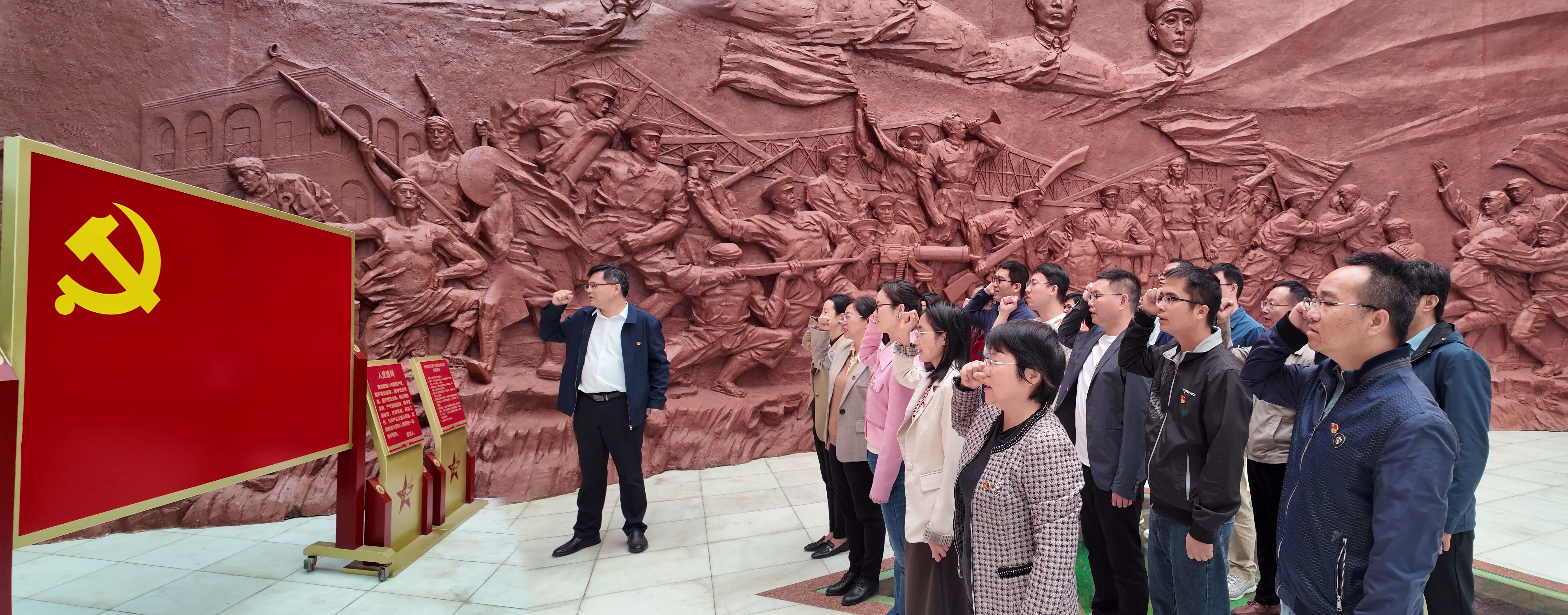 在龙州起义纪念馆一楼大厅,刘培军书记带领全体教师党员重温入党誓词。誓言声声,铿锵有力,表达了党员们对革命事业的坚定信念和对党忠诚的政治品格。