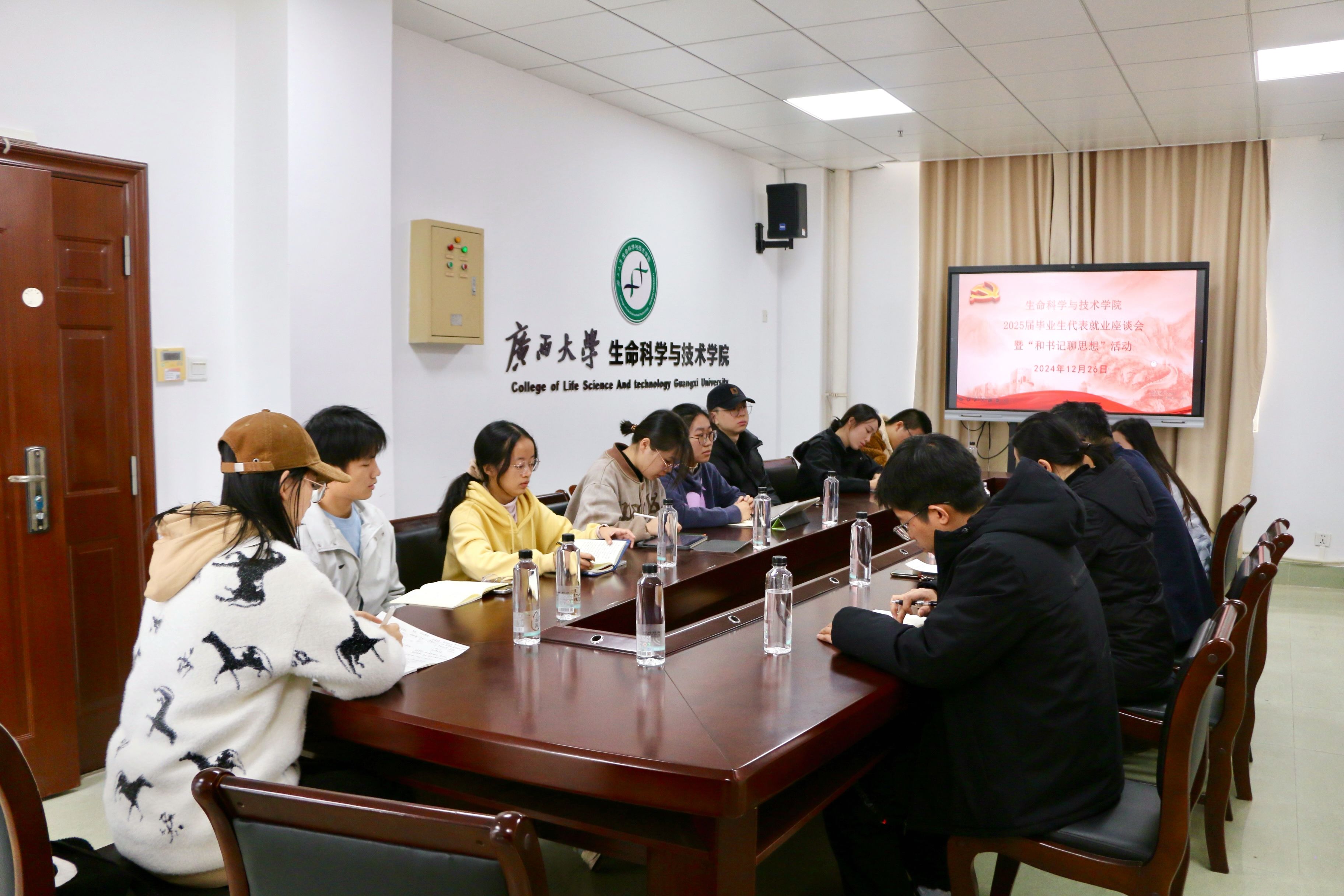 12月26日上午,太阳集团tyc138在201室召开“和书记聊思想”主题活动暨2025届毕业生代表就业座谈会。学院党委书记刘培军,团委书记马奕,学工组辅导员贺超以及太阳集团tyc1382025届毕业生代表参加座谈。座谈会由学院党委副书记、纪委书记覃文月主持。