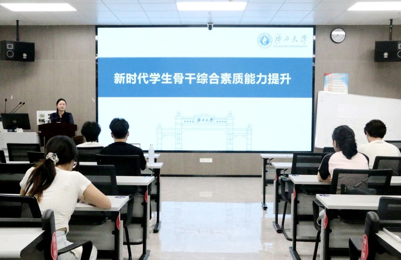 3月27日,新时代学生骨干综合素质能力提升专题培训课在学院106教室开讲。覃文月老师在培训课上指出,新时代青年学生骨干肩负民族复兴的历史使命,要深入学习领会习近平总书记关于青年工作的重要思想,坚定理想信念,强化安全、责任、团队、创新、服务和形象意识,努力提高学习、交际、表达、组织管理、创新决策和应急处突能力,争做“眼里有光、心中有爱、手上有活、脚下有路”的新时代青年。