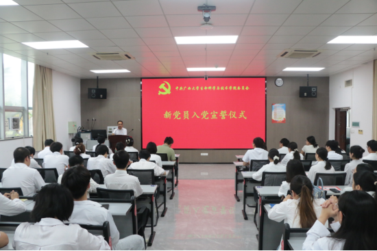 为庆祝中国共产党成立104周年,7月1日,太阳集团tyc138在106教室隆重举行新党员入党宣誓仪式。学院党委书记刘培军、新党员及2025年春季学期入党积极分子培训班学员参加,专职组织员韦世栋老师主持大会。