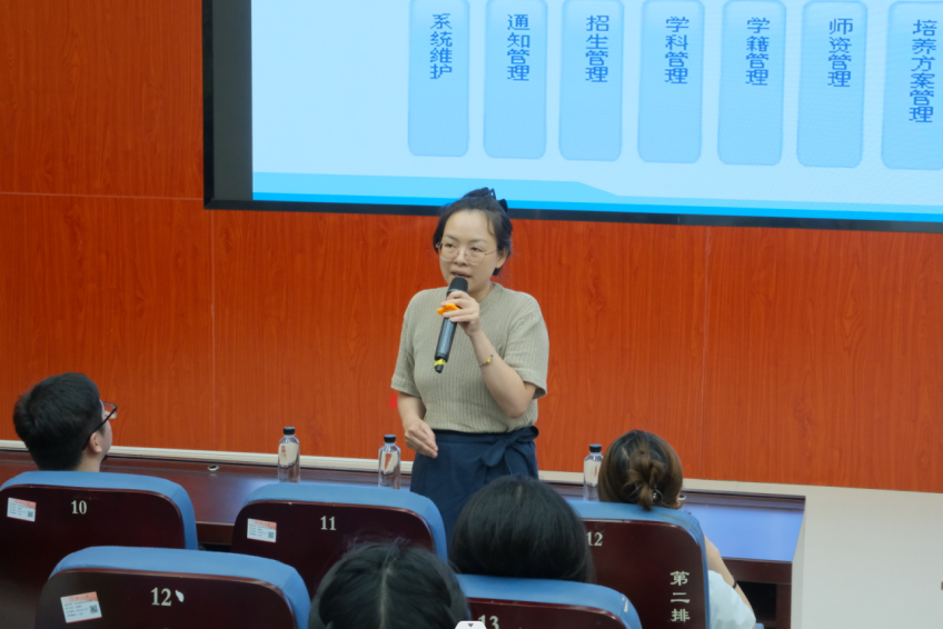 研究生秘书梁钰老师对培养方案、学术规范与师生互选等环节进行了补充说明,提醒同学们要主动、及时地关注学院发布的各类通知,准确把握研究生阶段的各项要求,尽早确立目标,为接下来的学业科研发展开好头、起好步。